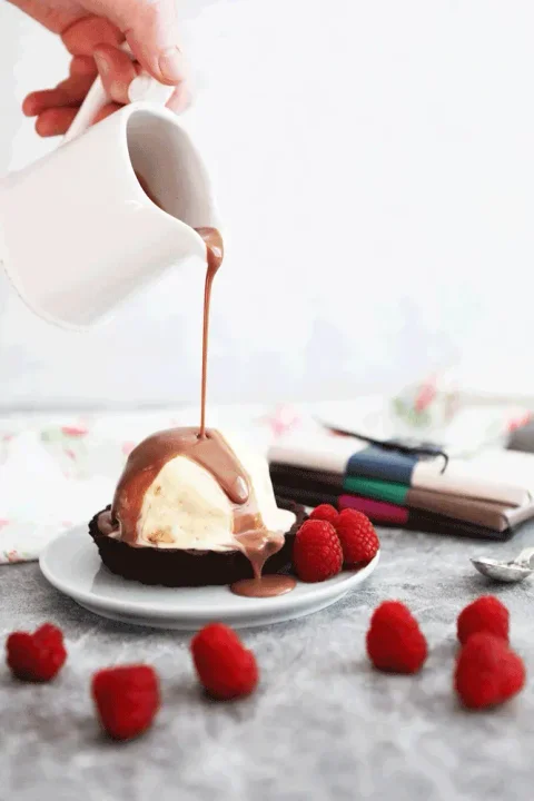 Aitoa vaniljajäätelöä supernopealla kotitekoisella suklaakastikkeella